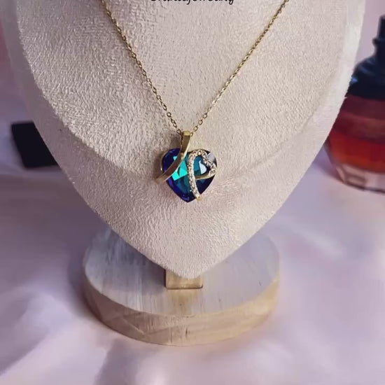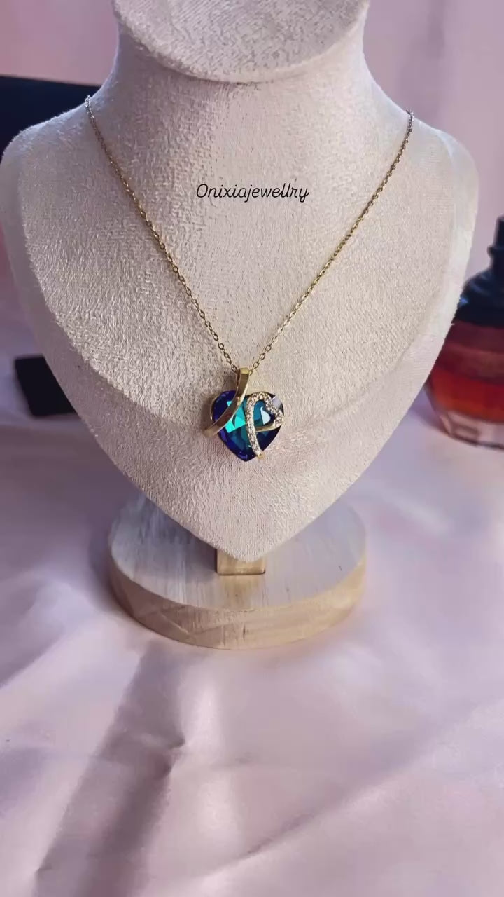 سلسلة ذهبية بقلب أزرق كريستالي مرصّع بالفصوص البراقة… لمسة فخامة تُضيء إطلالتك بكل أناقة 💙💎