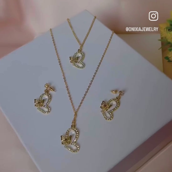 طقم أنيق من 7 قطع متكاملة: سلسة ذهبية اللون من مادة آسي مقاومة للصدأ، مع زوج من الأقراط الراقية، خاتمين عصريين، ودبوسين شعر أنثويين لإطلالة متناسقة وأنيقة تدوم معك في كل مناسبة.